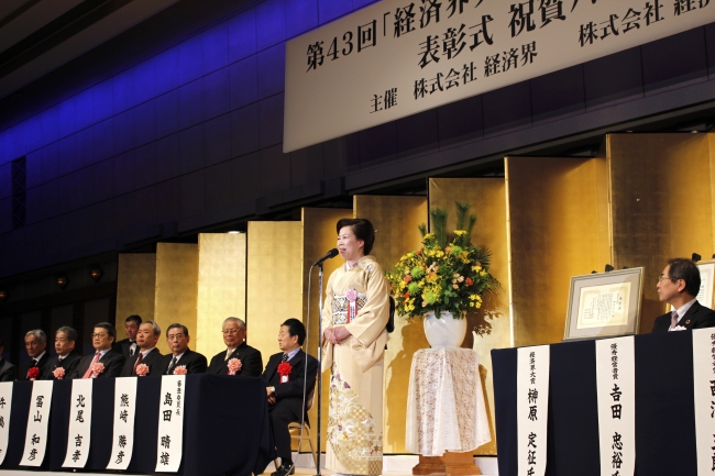 授賞式は、第四十三回経済界大賞表彰式と同式で行われ、各界からの著名な経営者が多数出席しました。会場には約1,000人が来場し、賑やかな式典となりました。
